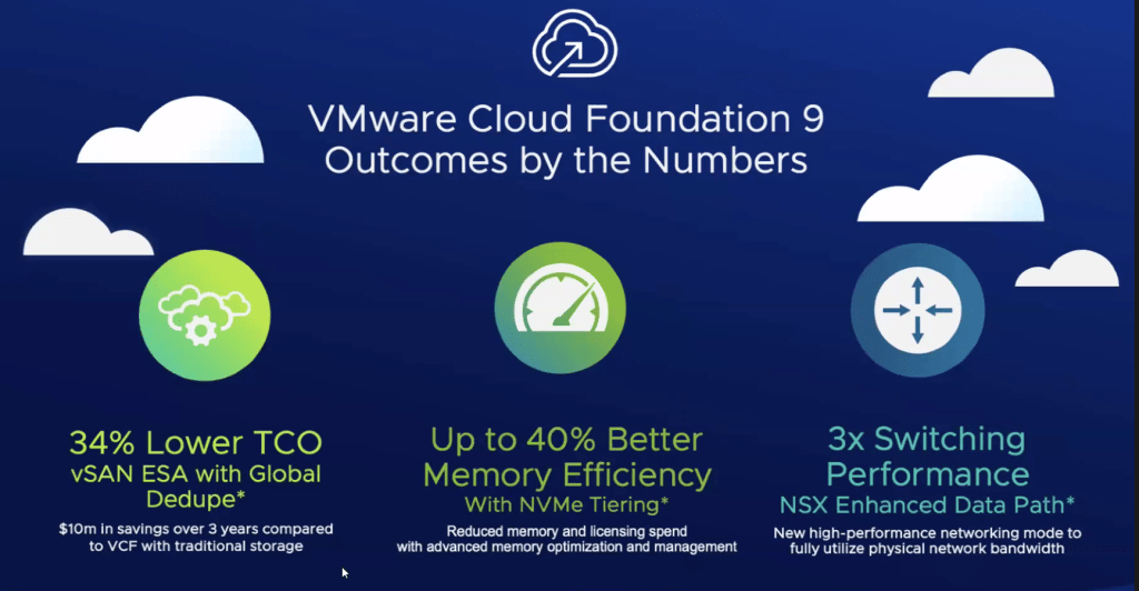 - Memory Tiering (vSphere): This innovation is projected to increase virtual machine density by approximately 40%, leading to substantial cost savings.