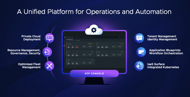 Integration: Integrate with cloud management solutions like VMware Aria Suite (formerly vRealize Suite) for enhanced monitoring, automation, and lifecycle management.