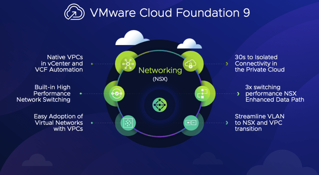 Traditional networking can often create bottlenecks and hinder agility. VCF overcomes these limitations by virtualizing the network, which facilitates workload mobility and adaptability. Moreover, it supports virtual private cloud (VPC)-driven networking. This innovative feature allows development teams to consume network services on demand, fostering a more agile and responsive IT environment.