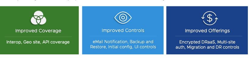Improved Offerings are available in terms of addressing security concerns with Cloud to Cloud replication encryption of data at rest! Multi-site authentication improves user experience and now providers can control via SLA policy whether customer have access to migration or DRaaS or both.