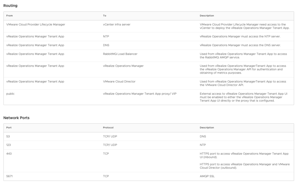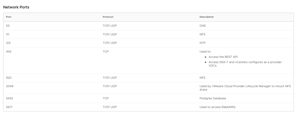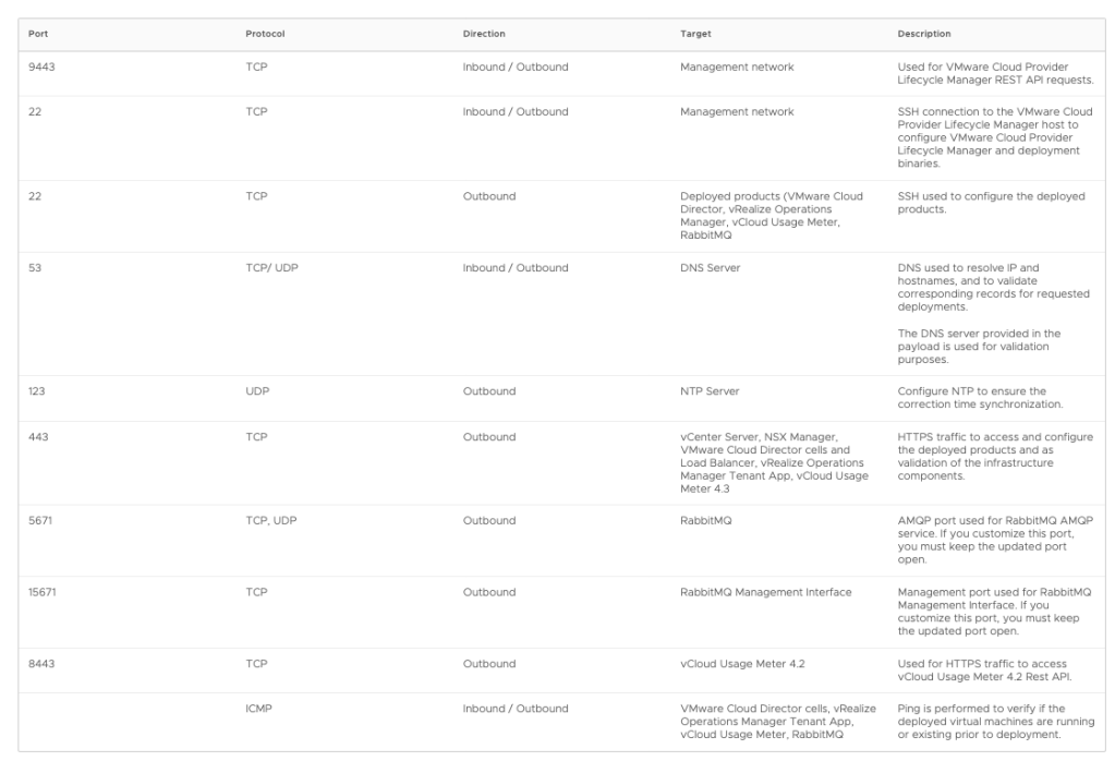 VMware Cloud Provider Lifecycle Manager Port List